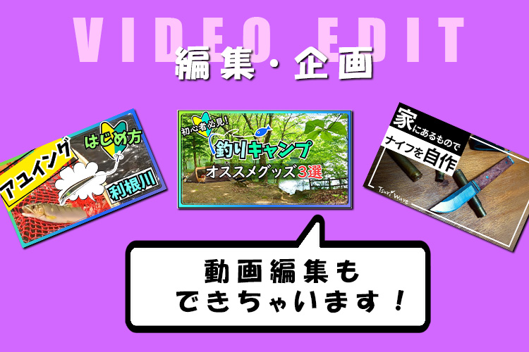 トラウト、バス、伊勢海老、サケ、キスが得意。マグロキャスティングの修行中。動画編集も主に担当。